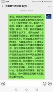 各教研室先后利用微信进行集体备课。老师们积极参与,畅所欲言,第一次集体备课对授课平台、授课模式、授课内容、学生互动、课后作业、效果监测、促学机制等方面逐个进行了讨论。第二次集体备课进一步完善了线上教学模式。在钉钉,微信,雨课堂,腾讯会议,QQ建立班群,按时上下课直播授课,教师设置任务等引导学生学习。教师根据本班级学生水平,所用的线上教学平台的特点,布置课后作业,灵活处理课后作业。