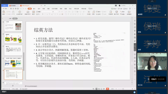 疫情之下,英语专业第二教研室全体老师积极通过问卷调查和师生微信交流等方式,多措并举加强对英语专业学生的人文关怀。在了解到2017级学生现在居家学习,大部分同学正在为如何准备考研而感到焦虑后,英语专业第二教研室老师积极作为、多方努力,邀请到了外语系2019届优秀毕业生用“云”分享的方式为在校生进行“现身说法”。
