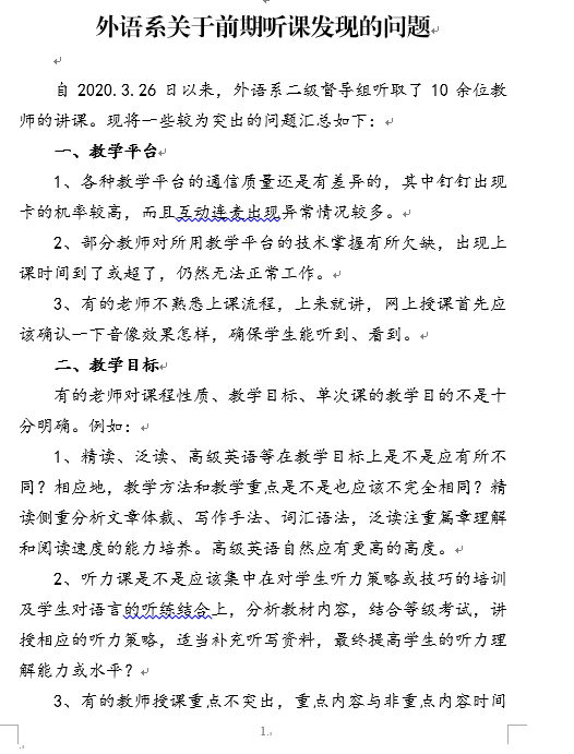 为扎实推进疫情期间教学有序开展,保证在线学习与线下课堂教学质量实质等效,根据学校做好线上教学有关工作的通知精神,AGE动漫 成立了线上教学督导组。通过每周在线听课督导,掌握线上教学动态,及时发现问题并监督整改,提高在线教学质量、教学效果和教师教学水平。