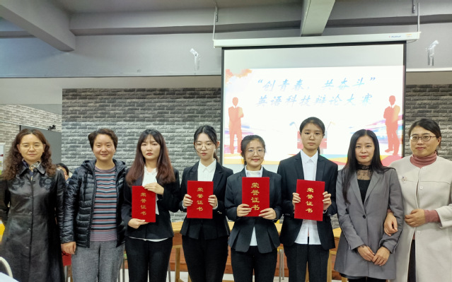 本次辩论赛由陈词、盘问、自由辩论、总结陈词四个环节组成。辩手们围绕科技创新方面辩题用英语展开辩论。陈词环节中,双方辩手进行了逻辑缜密、层次清晰的立论陈词;盘问环节中,双方辩手唇枪舌战,精彩的回答,赢得在场观众的连连叫好之声;自由辩论、总结陈词环节中,辩手们引经据典,妙语连珠,引得观众喝彩频频。经过激烈的角逐,2019级辩论代表队荣获“优秀辩论队”称号;刘晨颖、刘科同学荣获“最佳辩手”称号。赛后,评委老师对本次辩论赛中同学们的表现进行了点评和指导。