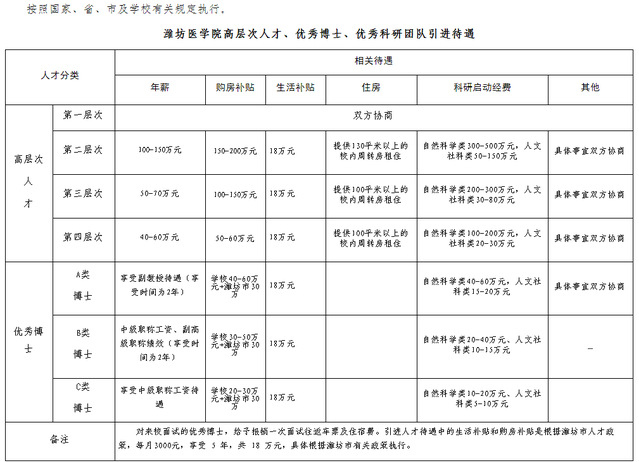 (一)高水平学科和专业急需紧缺人才,经学校研究同意,待遇可适当提高10-20%,在师资培养、科学研究等方面重点培养。