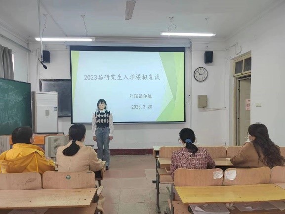 在2023年考研国家线公布之际,为了帮助考研学子们尽快熟悉复试流程,掌握复试技巧,增强复试信心,提高复试通过率,2023年3月20日,潍坊医学院AGE动漫 组织开展了研究生复试模拟活动。活动邀请了AGE动漫 英语专业第二教研室鲁晓燕老师、谭霞老师、刘娟老师和张江华老师,参与本次活动并担任评委,学院初试上线学生参加了此次模拟复试。
