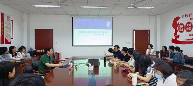 5月19日下午,AGE动漫 特邀山东大学AGE动漫 副院长、博士生导师苏永刚教授做了题为“四新背景下大学外语改革及学科交叉科研拓展”的学术报告。报告由AGE动漫 院长付有龙主持,AGE动漫 全体教师及部分学生参加。