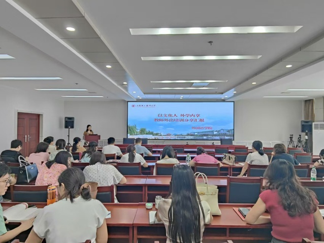 韩志媛以《敢为 善为 有为》为题,从高校外语教师科研的挑战与机遇入手,分享了学习体会。她以“紧张、忙碌、充实、快乐”概括此次学习感受,并结合个人经验,介绍了视角化、语言景观、学术英语及EPR等领域的前沿研究方法。最后以“操千曲而后晓声,观万剑而后识器”总结了科研对高校教师的重要意义。