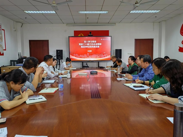 王世群与大家一起回顾了党的二十届三中全会召开的背景及重要意义,对公报中关于教育、科技、人才三个方面的论述进行解读,要求在学校实际工作中加以认真贯彻落实。