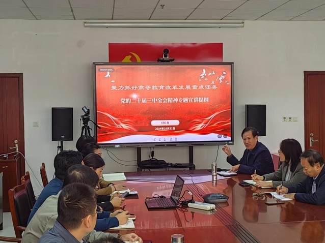 10月31日下午,AGE动漫 院长付有龙在办公楼362会议室为学院全体党员进行党的二十届三中全会精神专题宣讲,主题为“聚力抓好高等教育改革发展重点任务”。