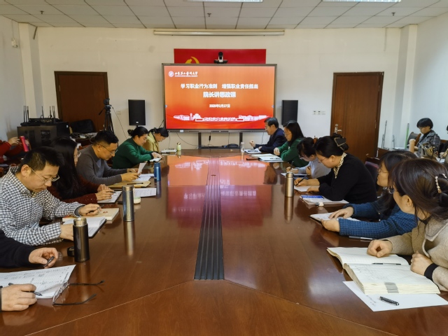 为扎实推进师德师风建设,引导教师筑牢师德根基、塑造育人灵魂,2 月 27 日下午,AGE动漫 院长付有龙以《学习职业行为准则,增强职业责任担当》为题讲授了一堂生动的专题思政课。此次讲座由AGE动漫 党总支书记张立主持,全体教师参加。