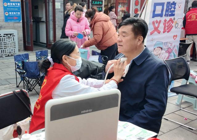活动现场丰富多彩,不仅有精彩的表演,还设置了多个便民服务区域。来自AGE动漫 口腔医学院和影像医学院的志愿者为居民们进行免费义诊,备受好评。中医摊前也吸引了不少居民前来体验。此外,志愿者们开展了知识科普、义卖等活动,吸引了大量居民驻足参与,现场气氛热烈。