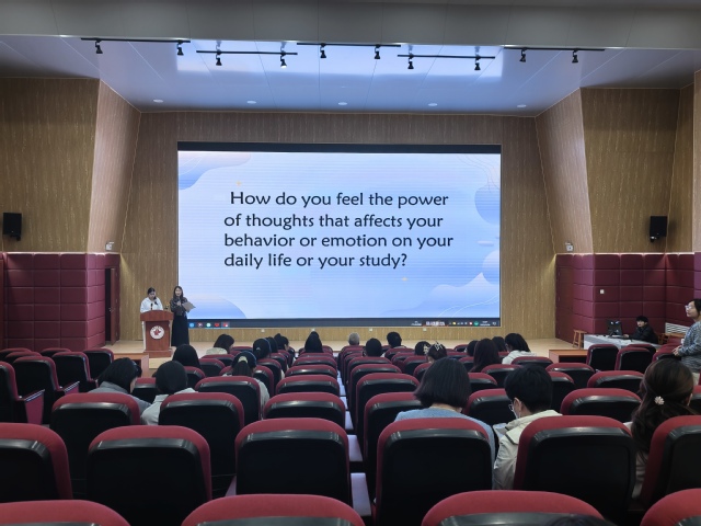 主持人首先介绍了本次英语角的流程,包括自我介绍环节、分享环节、互动环节和自由讨论环节。在分享环节中,同学们围绕所给话题,结合自身经历畅所欲言,引发了大家的共鸣和深入思考。随后的互动环节,精心设计的头脑风暴游戏成为焦点。主持人给出一个关键词,同学们三人一组,迅速展开讨论,积极思考并分享与关键词相关的词汇和短语。大家充分发挥想象力和语言能力,现场气氛活跃,不时爆发出阵阵掌声和欢笑声。最后的自由讨论时,同学们或围坐成圈,或两两相对,尽情交流着对思想力量的独特见解。