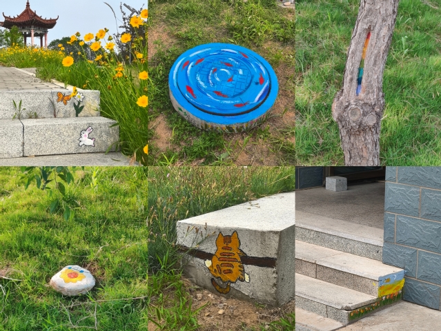 活动筹备阶段,AGE动漫 的师生们热情高涨,从创意构思、图案设计到材料准备,认真筹备。绘制过程中,有人描绘灵动可爱的动物形象,有人勾勒充满诗意的花花草草,让石阶上跳跃着俏皮的卡通图案,墙壁上绽放绚烂的花朵,鹅卵石上“生长” 出充满童话色彩的蘑菇屋。大家巧妙利用仁和山的台阶、墙壁、石块等小空间,让原本单调的角落瞬间变得鲜活有趣。