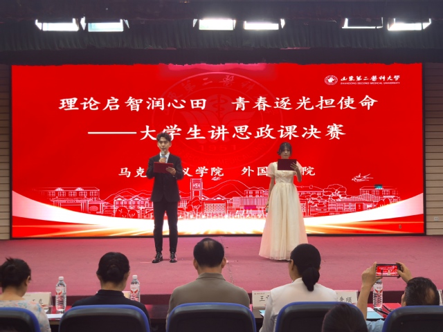 舞台上,参赛学生以思政课教师身份,将专业特色与理论阐释深度融合:医学专业学生结合抗疫一线案例解析中国精神内核,英语专业学生以校园生活场景演绎社会主义核心价值观实践路径,更有选手立足医者仁心特质,构建社会责任与职业伦理的思辨框架。多维度的案例叙事、互动式的课堂设计,赢得现场观众多次掌声,充分展现新时代青年的理论素养与表达活力。
