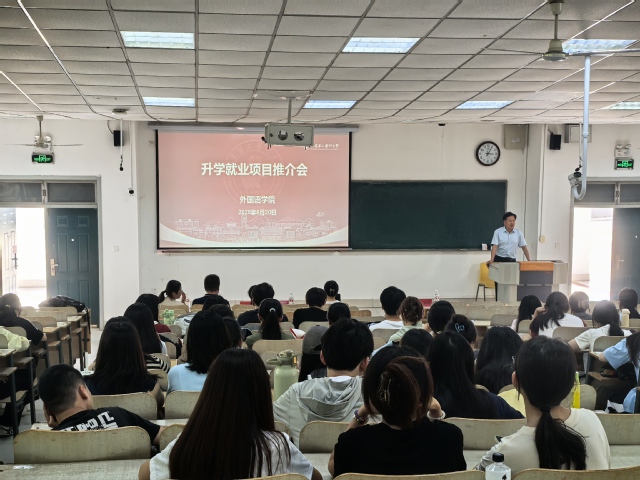 随后,北京工商大学语言与传播学院副院长史岩林、刘亚男老师作为特邀嘉宾进行项目介绍。他们围绕翻译学、国际法商英语等学科项目,从课程特色、培养模式等方面展开讲解,突出项目优势与发展前景,引发了在场同学浓厚的兴趣。