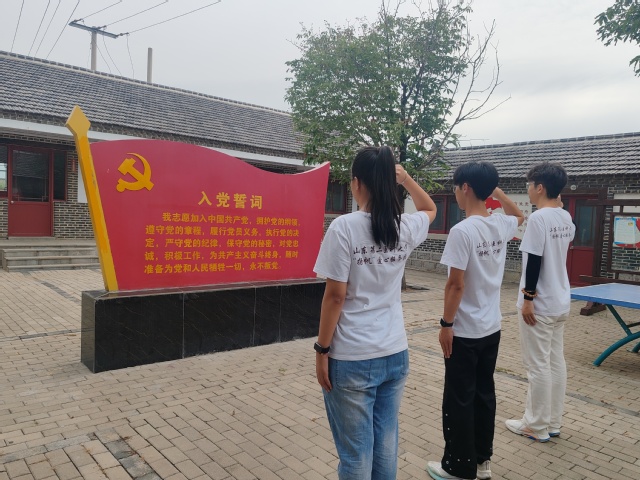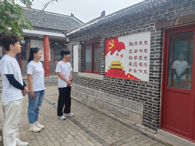 上午,服务团部分成员前往昌乐县响水崖村。在红色教育展板前,大家学习了当地的革命故事——从战争年代村民踊跃支援前线的热血事迹,到新时代乡村在红色精神指引下脱贫致富的奋斗历程,一个个鲜活案例让“艰苦奋斗、无私奉献”的红色基因变得可触可感。随后,成员们结合史料深入学习了中国近现代史中昌乐地区的革命印记,深刻体会到“没有共产党就没有新中国”的深刻内涵。