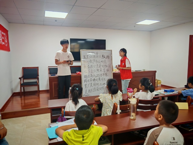 下午,“321”学堂响起了嘹亮的歌声。志愿者们带领孩子们学唱《歌唱祖国》,一句句“五星红旗迎风飘扬,胜利歌声多么响亮”在教室回荡。教唱过程中,志愿者们结合歌词讲解祖国的发展成就,用孩子们能理解的语言讲述国旗、国歌的意义,让爱国情怀在歌声中悄悄扎根。