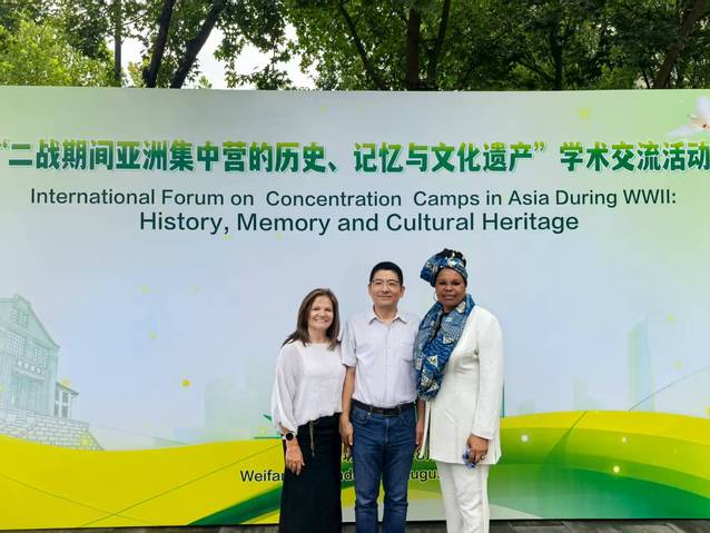 本次研讨会为国际社会搭建了重要的历史对话平台,李伟、韩向华两位老师在此次国际交流中发挥特长,贡献自己的力量。李伟担任研讨会现场的翻译工作,以精准流畅的语言转换,确保了中外嘉宾在研讨会期间的发言、交流环节顺利推进;韩向华担任国际和平城市协会副主席阿约的全程陪同翻译,还承担了为外宾介绍潍坊文化的重要任务。在外宾们参观潍坊风筝博物馆时,她用流利的英文为外宾们进行了生动细致的讲解,展现了潍坊这一“世界风筝之都”的独特魅力。