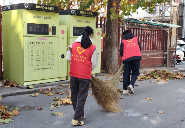活动中,志愿者们身着统一的服装,携带扫帚、铁铲、编织袋等清扫工具,分别前往社区的各个角落。大家分工协作、默契配合,有的清扫路面落叶,有的将堆积的落叶装入编织袋,有的则对绿化带内的垃圾进行清理。大家穿梭在社区的街巷角落,用青春的身影勾勒出一道靓丽的志愿风景线。经过一个多小时的努力,原本被落叶覆盖的角角落落变得整洁干净,社区环境焕然一新。